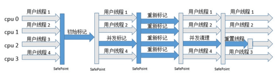 1. 初始标记:与 G1 一样,都是标记下 GC Roots 能关联到的对象,需要 STW,同样速度也很快。